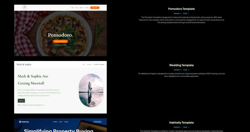 Start with a high-end template — included at no upfront cost. Your subscription covers everything: hosting, maintenance, and continuous improvements.