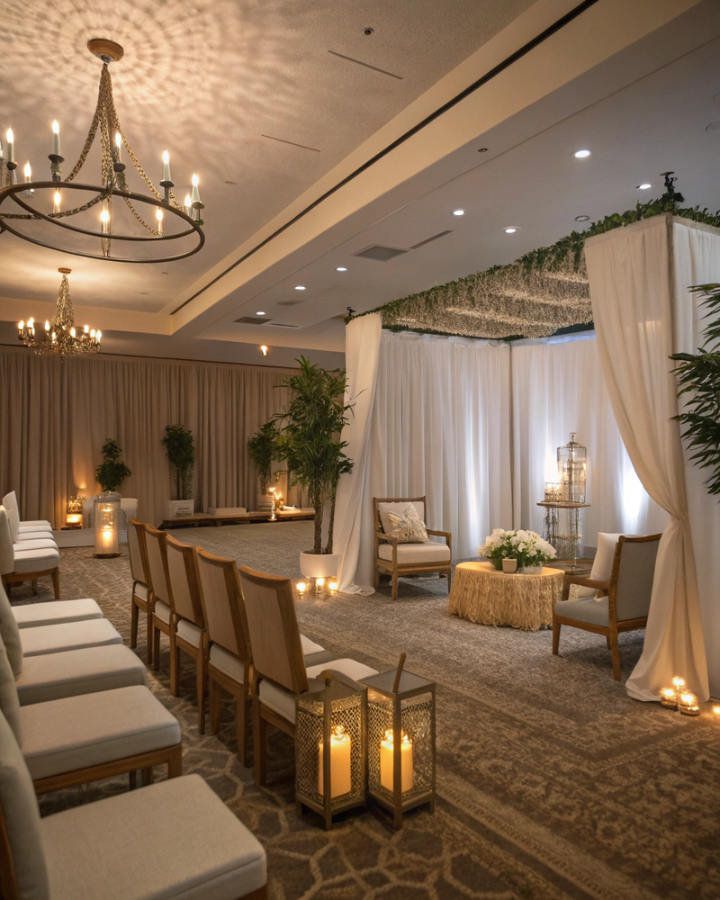 Nestled in the heart of elegance, our venue offers an intimate atmosphere where every detail is crafted to perfection. From weddings to private celebrations, create unforgettable moments in a space designed for romance and refinement.